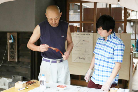 職人による指導で、漆や道具について説明を行いながら実施しますので、初心者の方でも安心して体験できます。