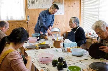 熊野洞では、漆を気軽に体験できる「箸の漆塗り体験」のほか、趣味として漆器づくりを学びたい方々為に「熊野洞の漆教室」を開設しています。