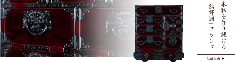木工・金具・漆の一貫生産 動画で知る熊野洞 My箸づくり体験 本格的な「漆」を使用した人気の工芸体験ができます。 動画を見る 秋保工芸の里 伝統の歴史と、手しごとの技を体感できる場所です。 動画を見る あきうクラフトフェア 秋保は、多くの芸術家が暮らす「ものづくりの里」として知られています。 動画を見る 連絡先 〒982-0241 宮城県仙台市太白区秋保町湯元字上原54-24 022-398-2661 022-397-2756 yfe74808@nifty.ne.jp @sendaikumanodou https://www.facebook.com/仙台箪笥 熊野洞-110840902613310/